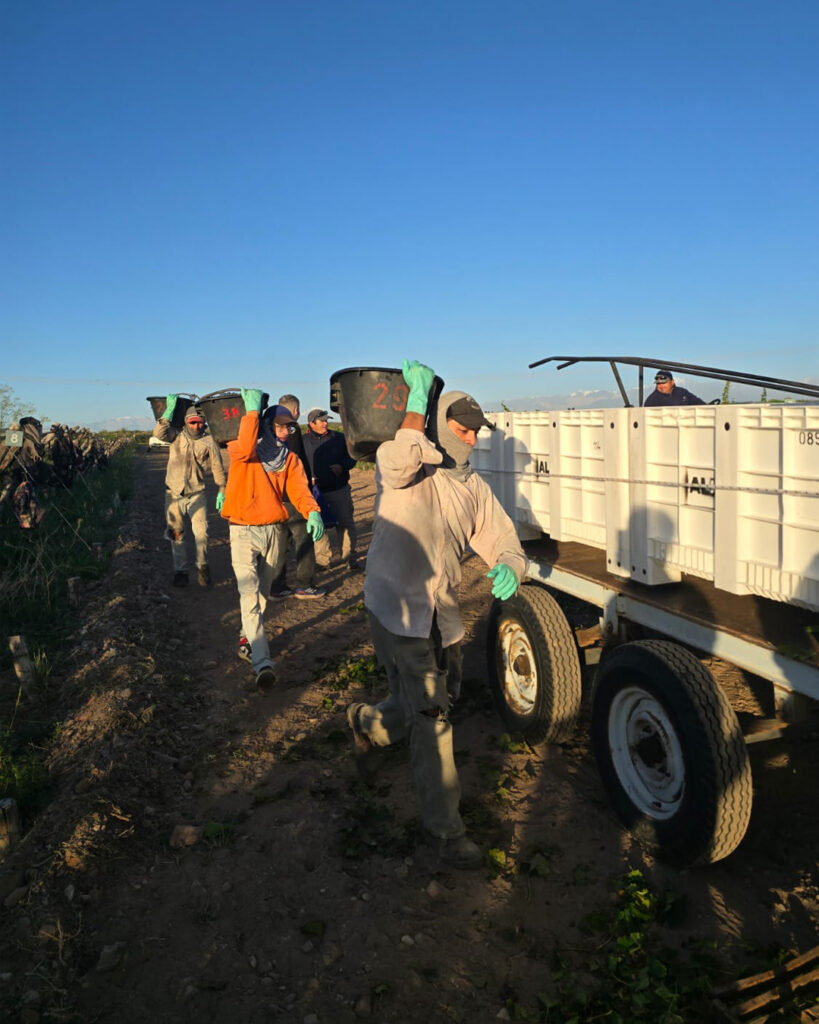 Entre el 12 de febrero y el 6 de marzo, vivimos una actividad frenética. Nuestros viñedos, Finca El Hormiguero y Jardín de Hormigas, maduraron en sincronía. Esto no es usual, ya que las vendimias suelen demandar un esfuerzo logístico inmenso para recoger en simultáneo las uvas de todos los viñedos. Esta añada, apenas terminábamos en la Finca El Hormiguero, comenzábamos en Jardín de Hormigas. El resultado de haber terminado la cosecha el 6 de marzo fue clave: logramos uvas con una sanidad impecable y un equilibrio natural entre azúcar y acidez que difícilmente se ve cuando el clima se vuelve extremo.